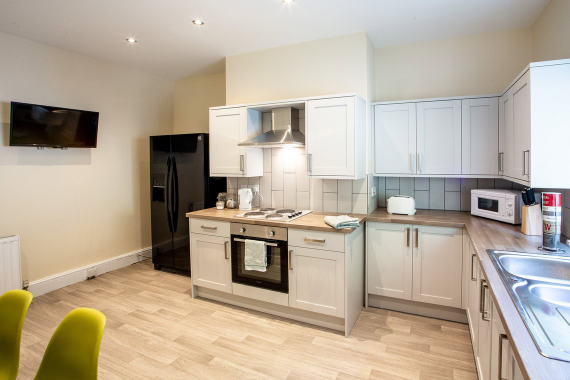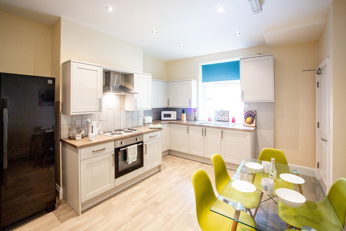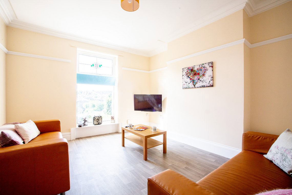 This stunning student house has a stylish modern desginer kitchen with all appliances and two luxury shower rooms and is great for 5 friends to share. The house boasts 5 large double bedrooms, a huge separate lounge with modern furniture throughout and leather sofas. All within a short walk of the Town centre and Huddersfield University. All bills (gas, electricity, water, sewerage & fibre optic broadband) are included in the rent.
