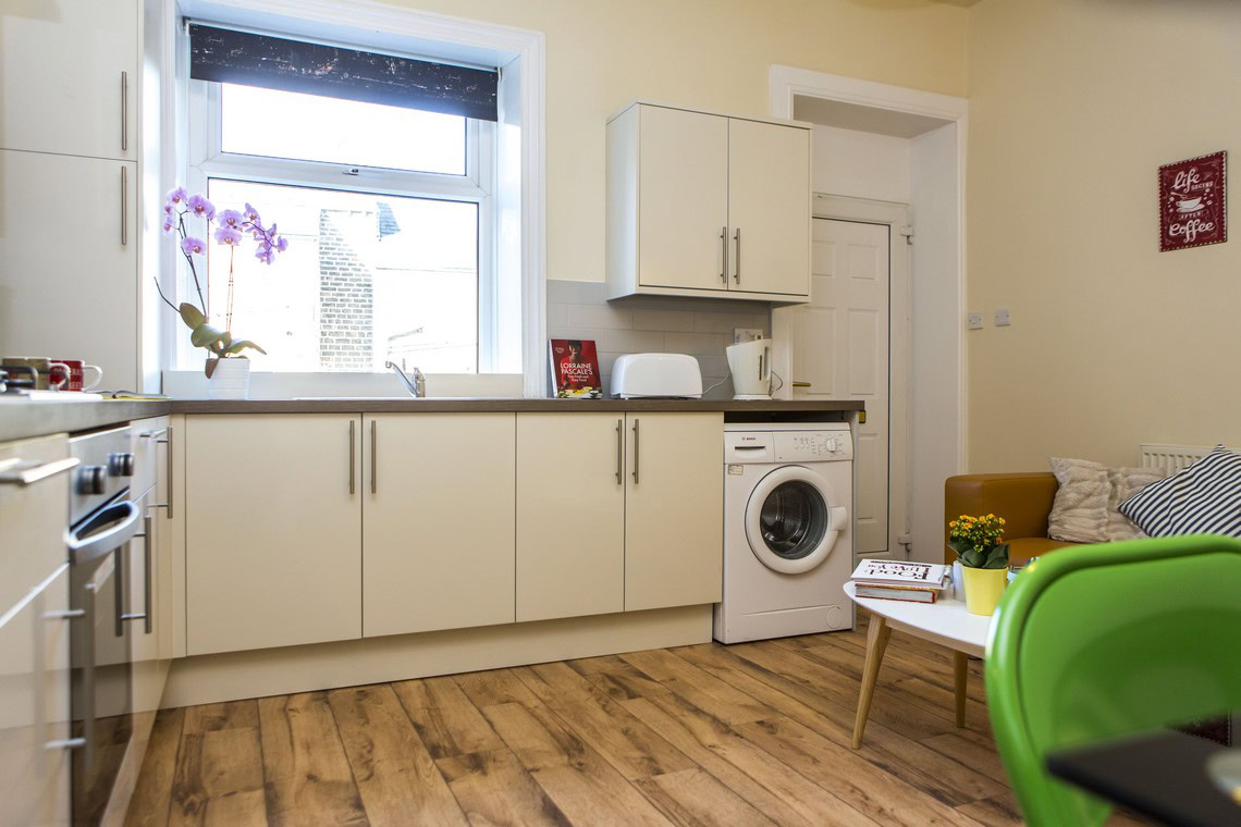 This great student house is really close to Uni and is fantastic for 5 friends to share. The house boasts a modern designer kitchen with all appliances, a separate lounge with leather sofas, two large luxury shower rooms and modern furniture throughout. All within a very short walk of Huddersfield University and the Town centre. All bills (gas, electricity, water, sewerage & fibre optic broadband) are included in the rent.